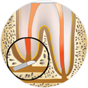 염증 조직을 제거한 후, 오염된 치아 뿌리 끝을 삭제합니다.